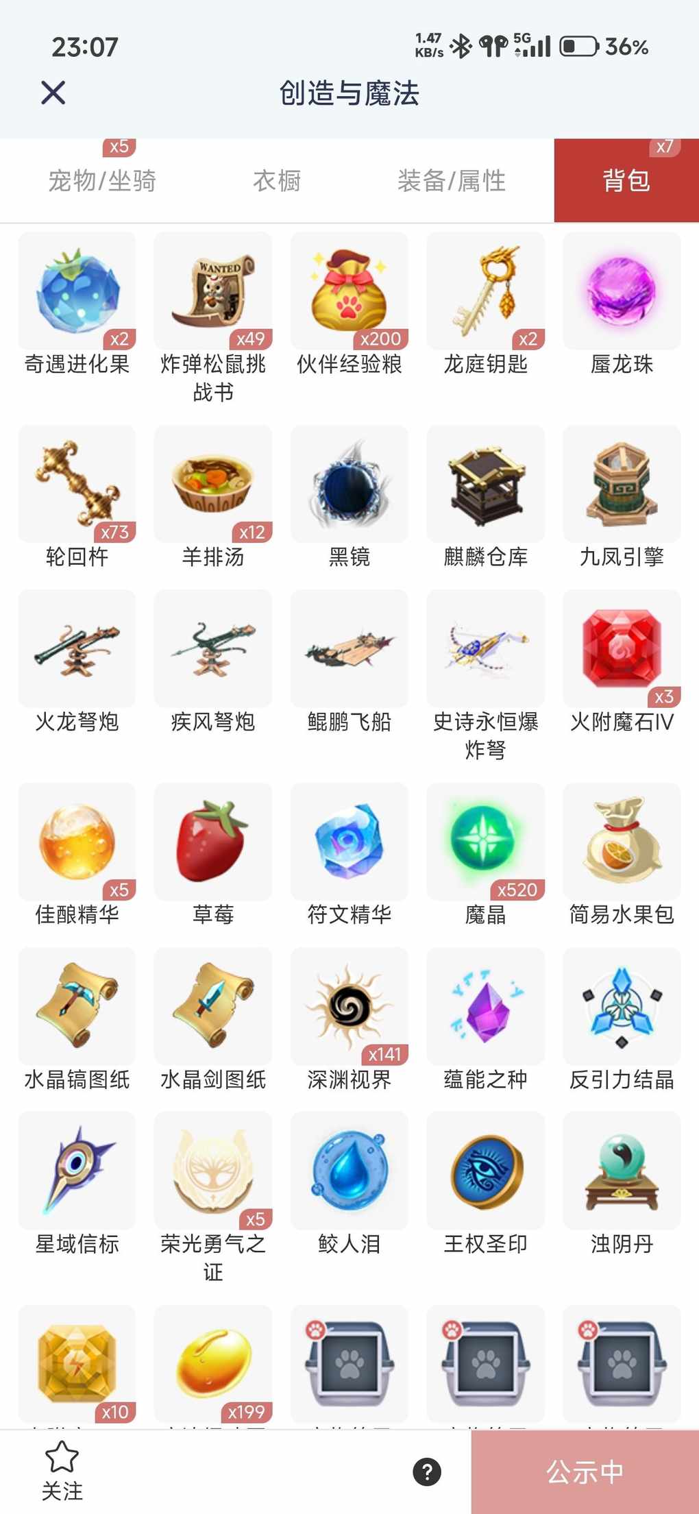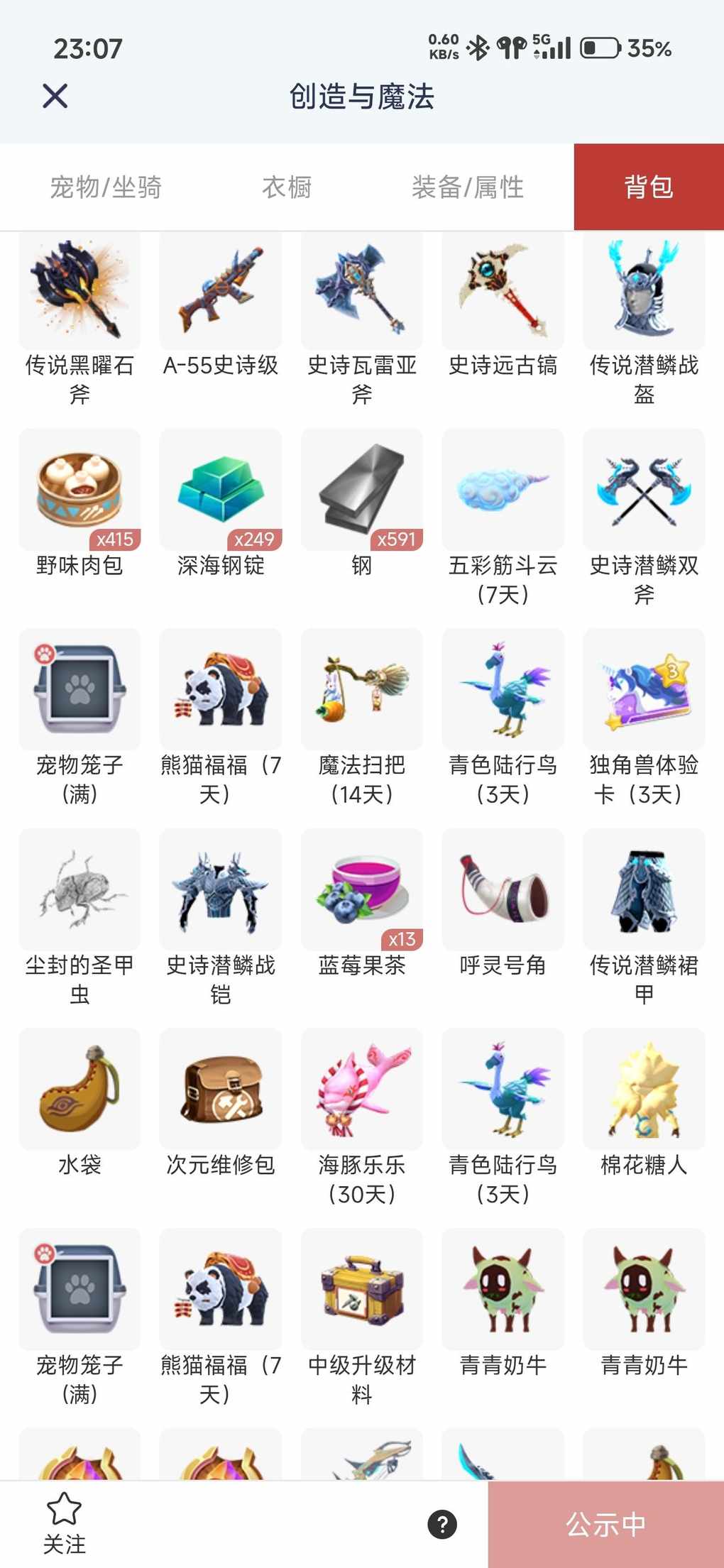650看一下,章鱼已经牵手,有幻卷,还有一些坐骑宠物都在工具箱里面,都是稀有的,可以看一下