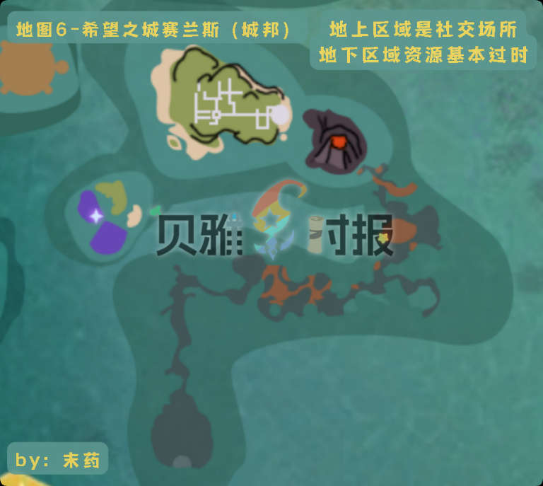 分为地下和地上两片区域。地上的区域有许多社交功能——集中的,可以开店的家园;各种功能性的npc;交易所...地下区域的资源在目前版本比较一般,大多数时候只是为了完成每周的城邦任务才会去。