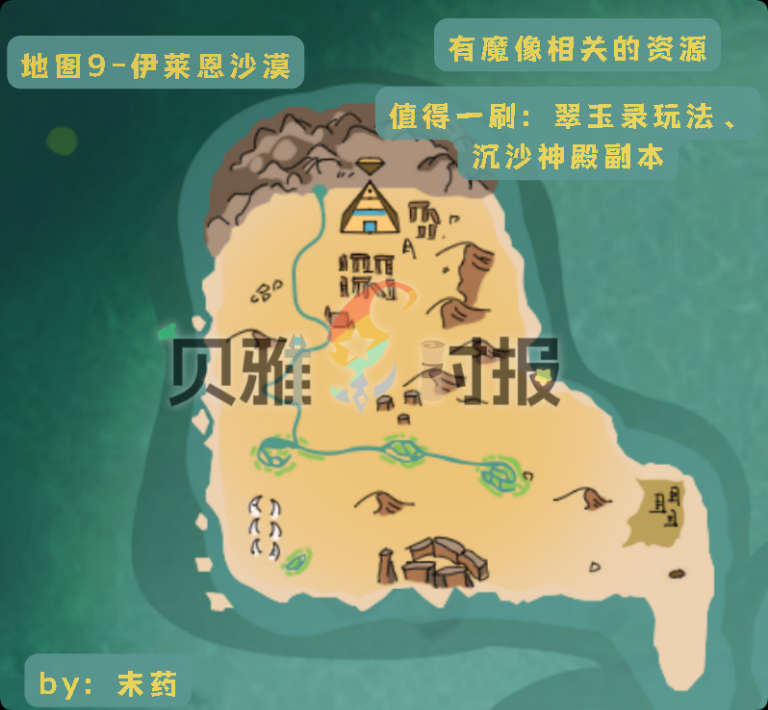 有“魔像”(可以短时间变身战斗或采集的装备)和沙漠版本丹药相关的资源。但比起下面的两种玩法来说,魔像并不那么重要——沉沙神殿和翠玉录。这两个内容后面会提到。总之,伊莱恩沙漠是大家以后会常去的地方。