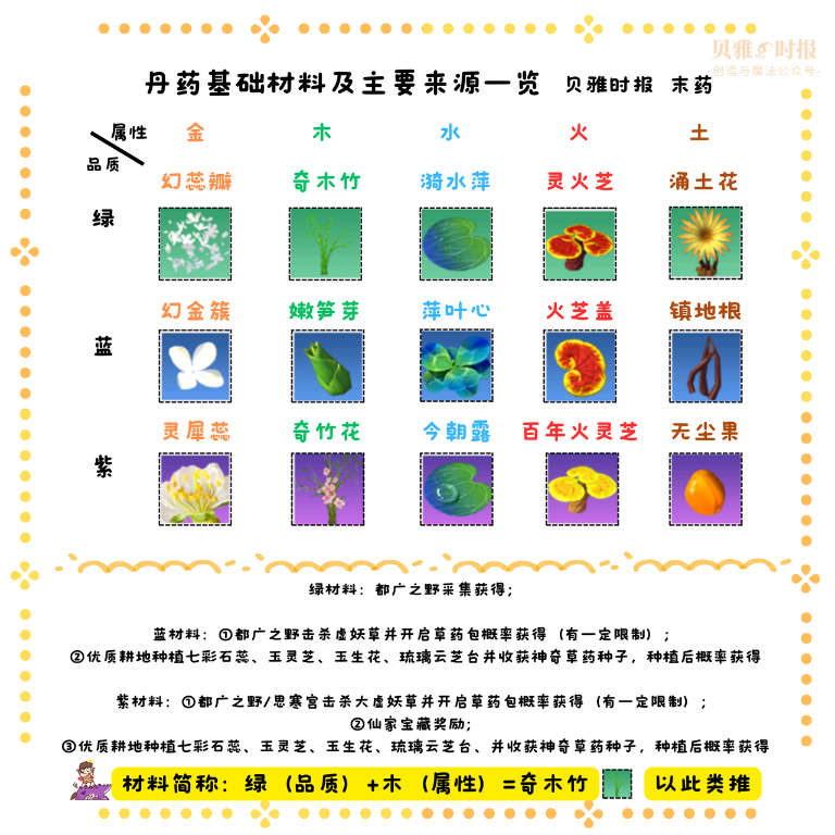有“丹药”(buff消耗道具+天赋解锁道具)相关的资源。值得大量刷取的产物——击杀虚妖草系列怪物并开启资源包获得的“药材”(有多种),容易出售,也可以自己炼丹用。