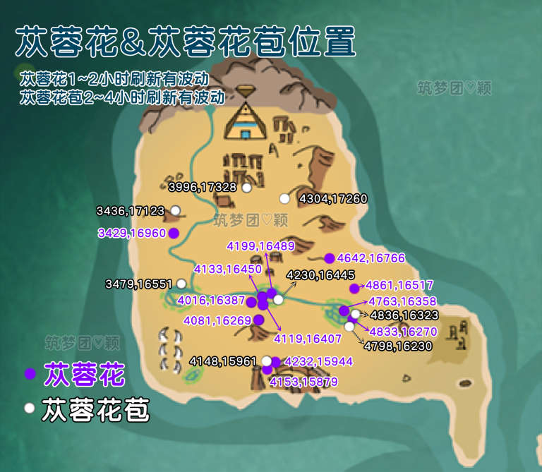 放一张苁蓉花(野生门票)的分布图,只需关注点位,时间会随着服务器活跃程度变化。