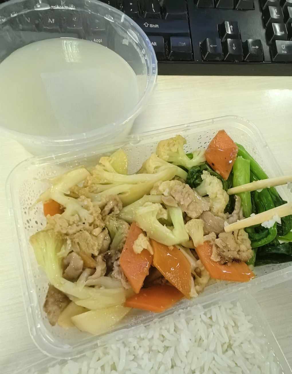 #牛马打工人工作餐·花椰菜胡萝卜炒肉Day17.『冷知识:椰菜花的花球部分是其“生殖器官”』椰菜花跟西蓝花🥦都是花型蔬菜,口感甚好,椰菜花好像口感比西兰花的更好,但是也更湿气重~……emmm……所以我们吃花椰菜是在吃人家的子孙后代。。。罪过罪过~12.17/周三/多云/21°