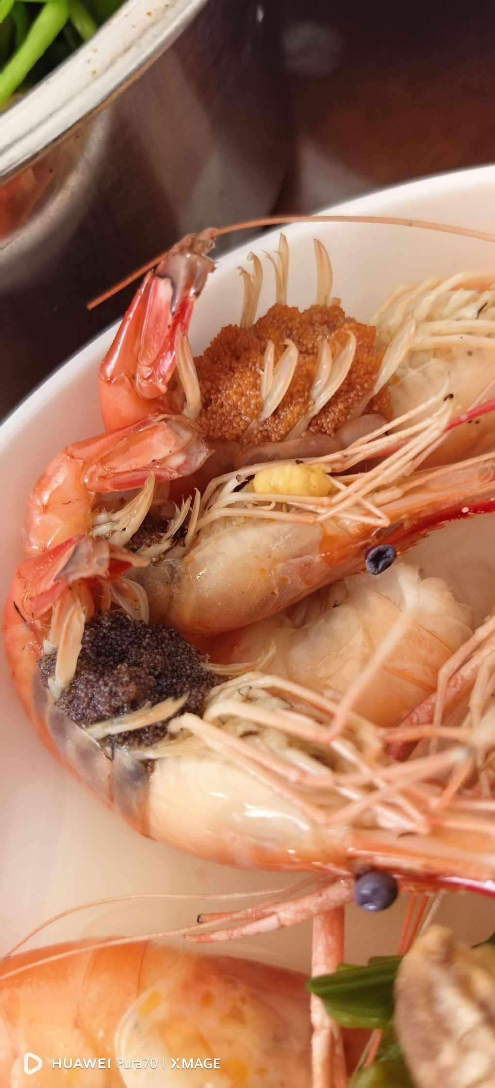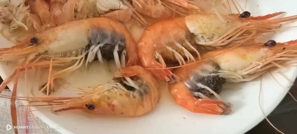 #今天的白灼虾🦐卵Day20.居然有卵,但是为什么有黑有红的有点膈应,不很敢吃了12.20/周六/晴/25°