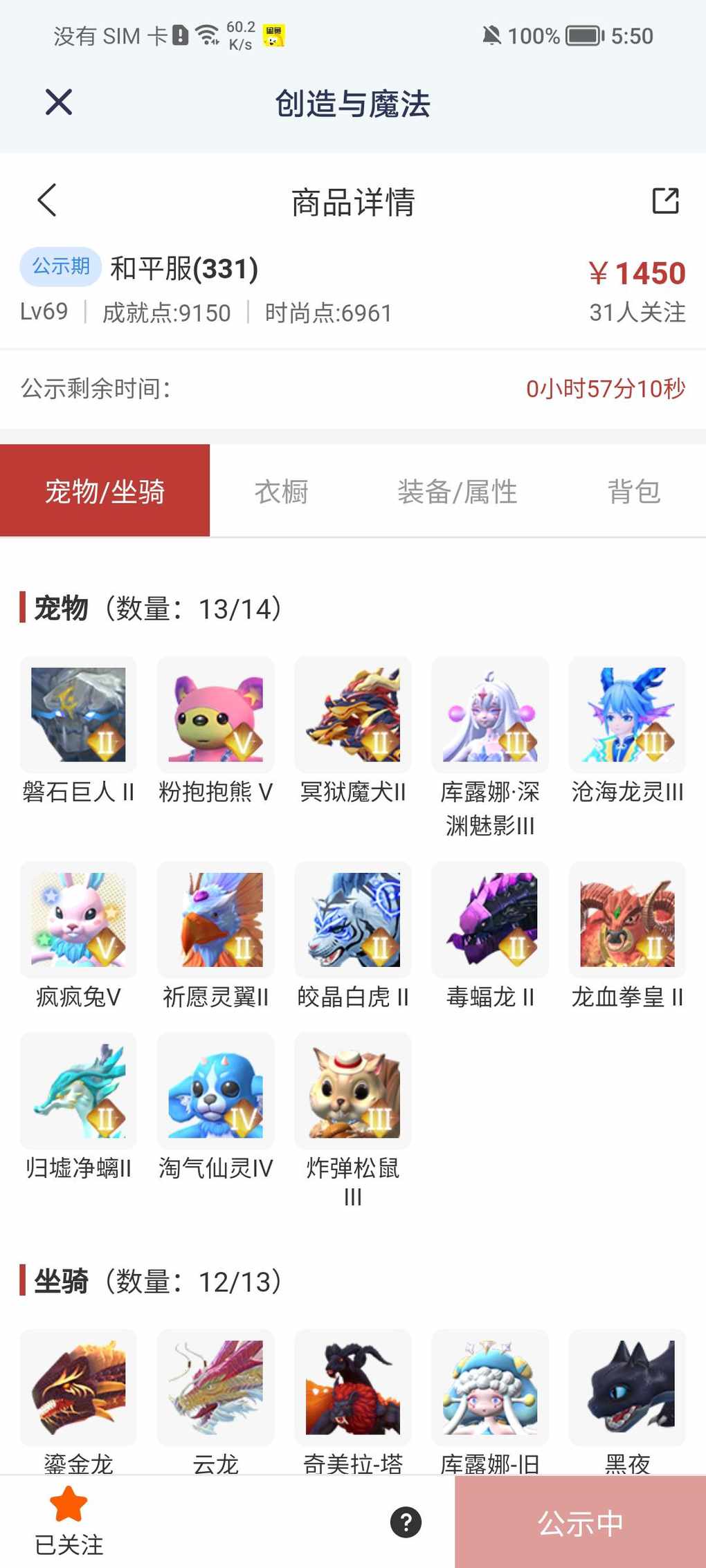 快来看看新上架的角色~区服:和平服(331)-角色等级:Lv69https://cbe.yingxiong.com/?to=%2Fcm%2Fgoods%2F334867&gameName=cm来自舱宝鹅(创造与魔法)看上的抓紧了,明天晚上下架,不过估计今晚就卖掉了