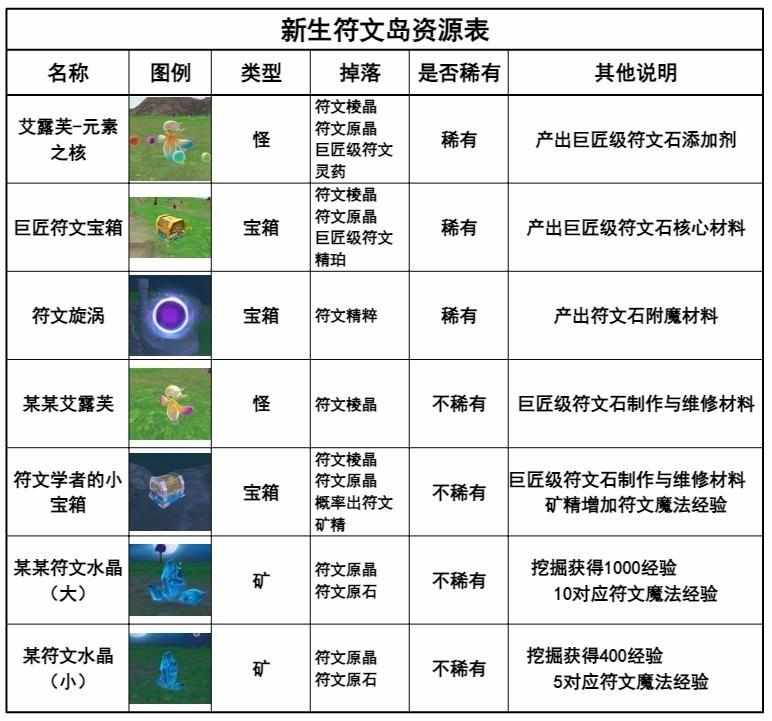 附:新生符文岛资源一览