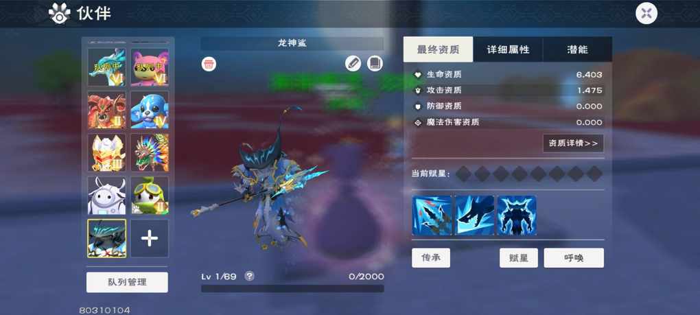 鲨鱼一般极品7.5,初始生命225满好像是
