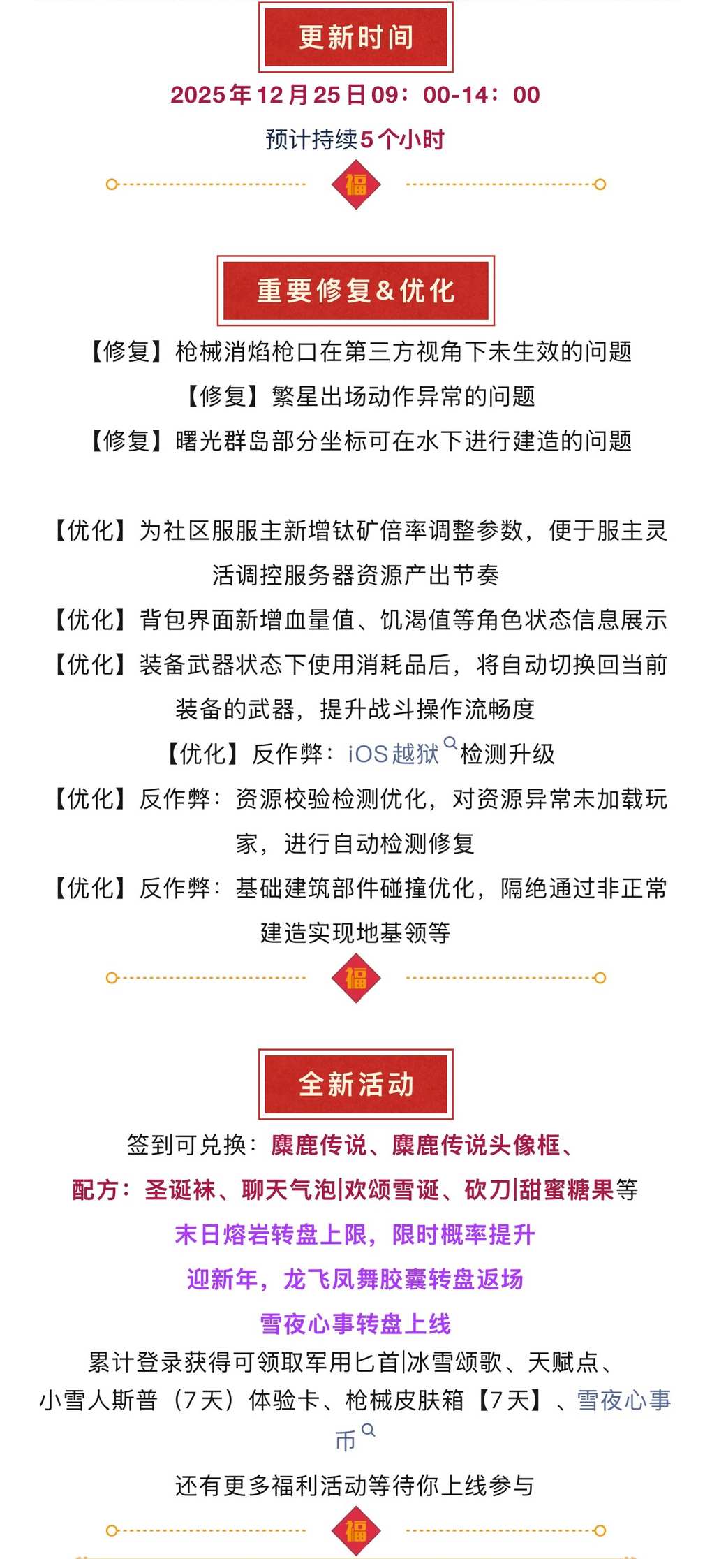更新公告|12月25日停机维护公告,迎新年,龙飞凤舞转盘返场!