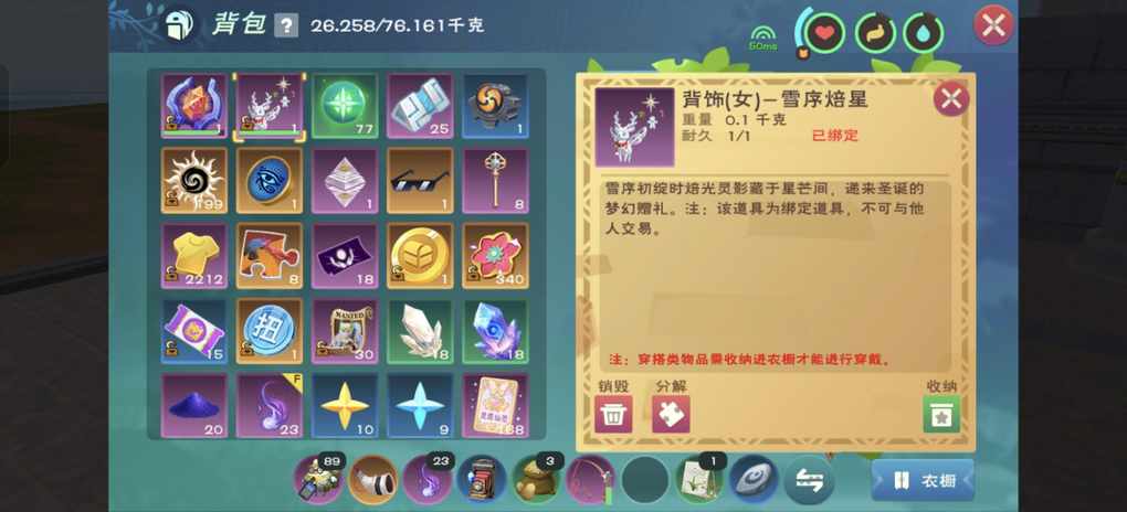 我尊嘟控制不住自己的开心 昨天凌晨收完地随便买了4个新背饰盒子 结果3个就出了背饰 激动的我又熬夜半个小时哈哈哈 最近回游完全养老状态 每天钓鱼,种地,炼金,看世界八卦,偶尔开个盒子还很惊喜 回顾了一下创魔已经陪伴我从大学到工作啦~ 创魔不倒就先玩着 好吧!我承认这个背饰是我昨天平安夜最好的惊喜!