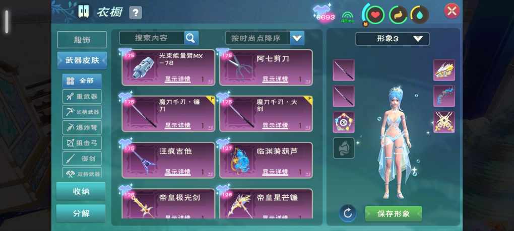 衣服:皓月,女娲,水魅,甜心,帝皇侠,傲龙全套,童趣,笃情,兔子,全套,3个天气幻世动作5果子40大喇叭,蛇鲨都快飞,几组卷轴,大剑剑气,100多核心,带装备武器567全套,帝皇侠全套,临渊一套308-372安卓,24号可鹅带装备物资