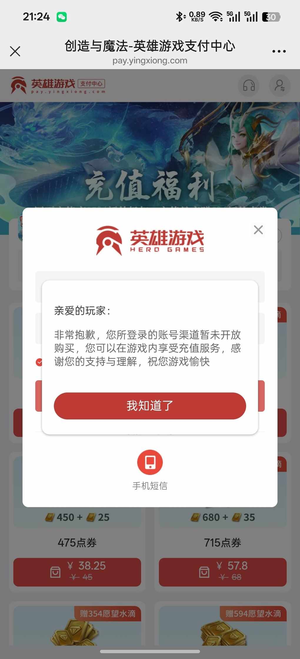 我服了,我应用宝渠道可以充,然后今天刚转到官方想买,结果不能买了