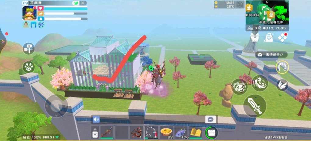 7城邦灯塔面朝大海右手边挨着围墙,飞过围墙就可以看到黑瓜位