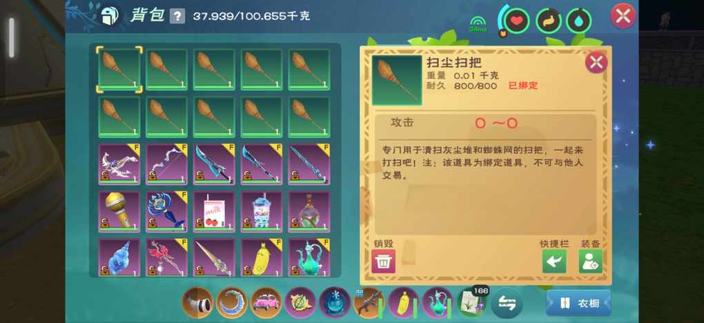 一把足矣,修复材料是1个木材,作用就只有一个,在怨咒女王单刷boos的时候,无限平A为她续命,打得时候只要耐久度有降低就是命中了,因为这个扫把没有伤害,打的时候没有显示但是会让宠物仇恨目标,而女王的回血机制就是主人攻击,不记伤害固定回血,所以这把扫把很好用