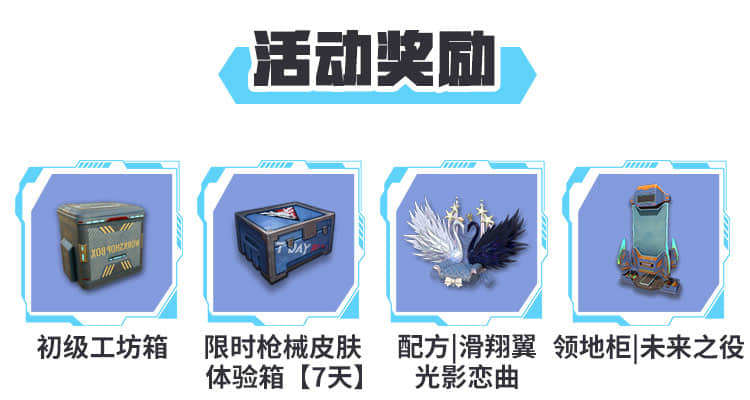 成功参与奖(不限):摸鱼币*99+初级工坊箱*1+限时枪械皮肤体验箱(7日)*1