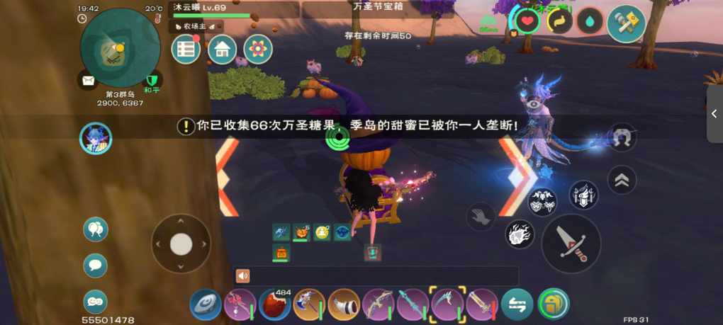 10月31号,万圣节活动的时候我想给这个糖果收集999个然后搞着搞着发现每个号限制66个,然后我花寒月木1:100收了700个哈哈哈(他们管这个叫大冤种)