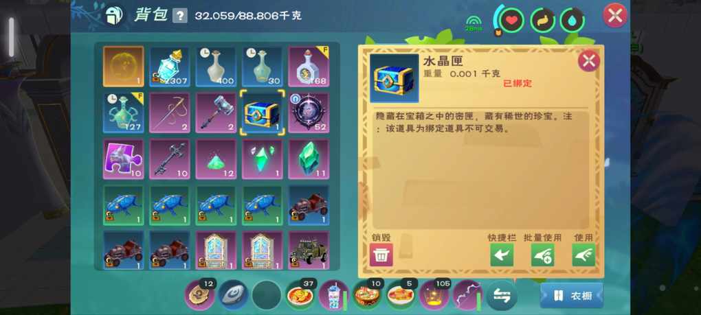 就是开水晶箱的时候会必爆这个匣子,然后还有几率出信封,还有那个低级附魂材料
