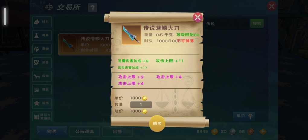 想买了自己用,然后手头上有一把金附魂的传说大剑,有点舍不得给他献祭了