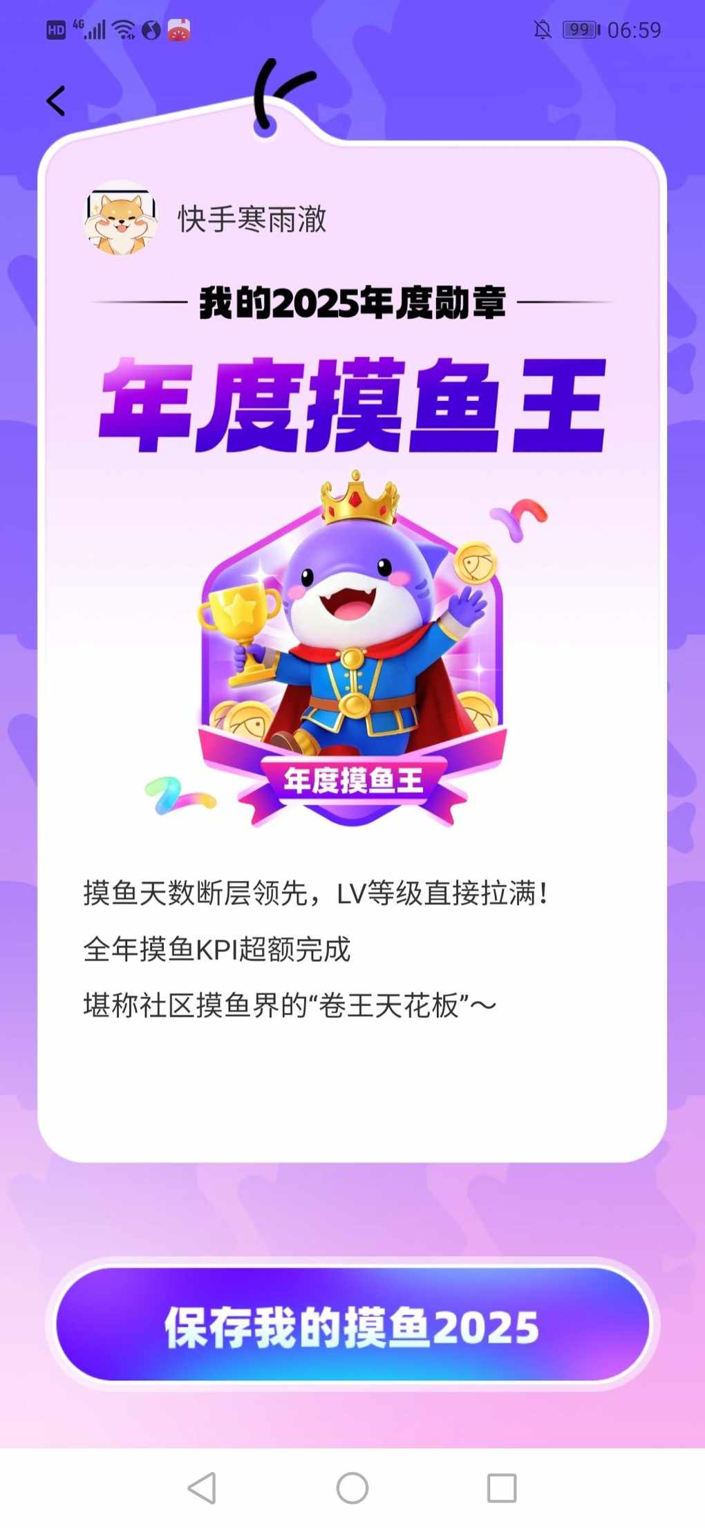 嘿嘿(✪▽✪) 年度摸鱼王在此!