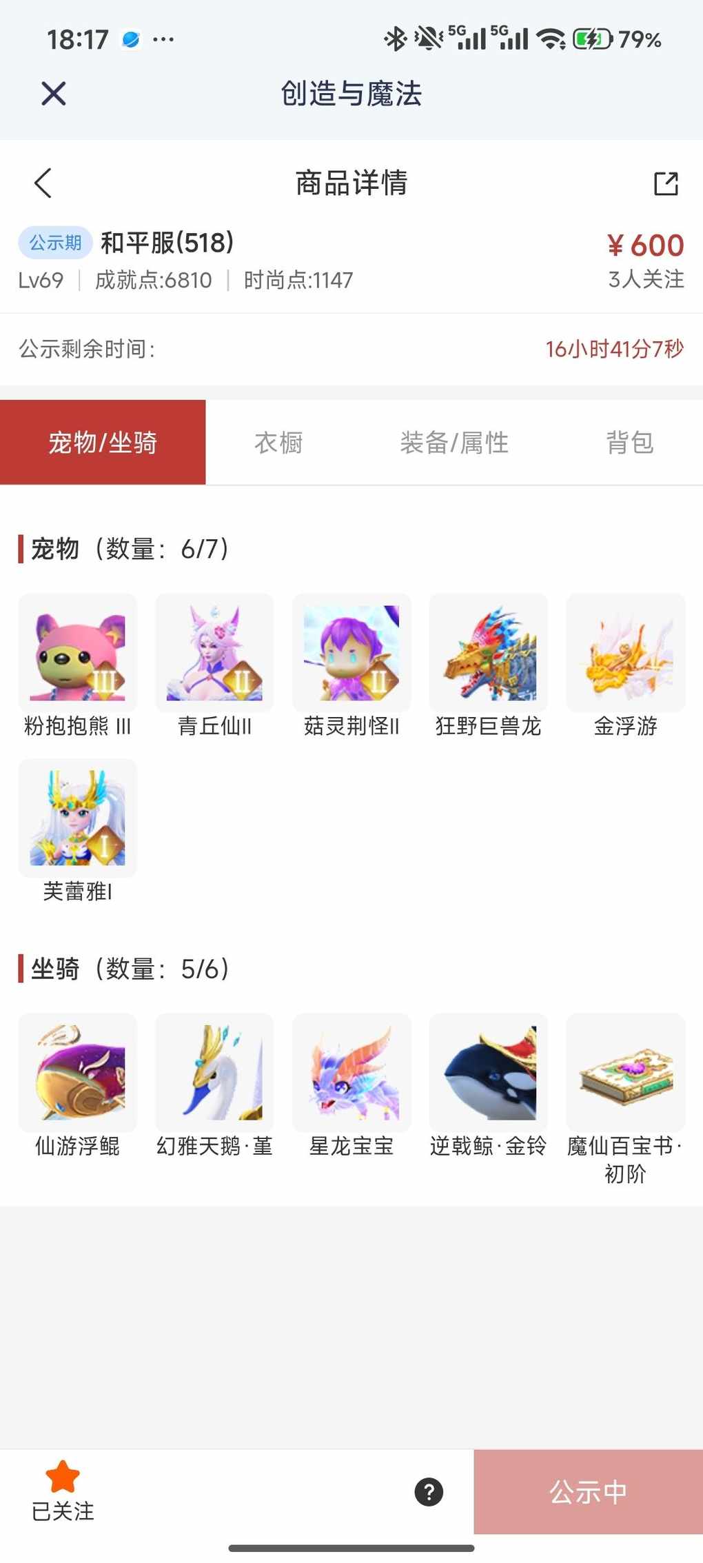 快来看看新上架的角色~区服:和平服(518)-角色等级:Lv69https://cbe.yingxiong.com/?to=%2Fcm%2Fgoods%2F353357&gameName=cm来自舱宝鹅(创造与魔法)