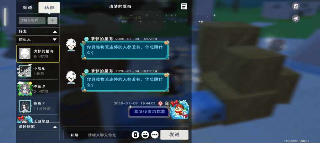 提问,这种人是啥情况,我又没他好友,自己老是给我放108坐骑,一个140都舍不得放,我看着碍眼就给他踢了,还是我错了