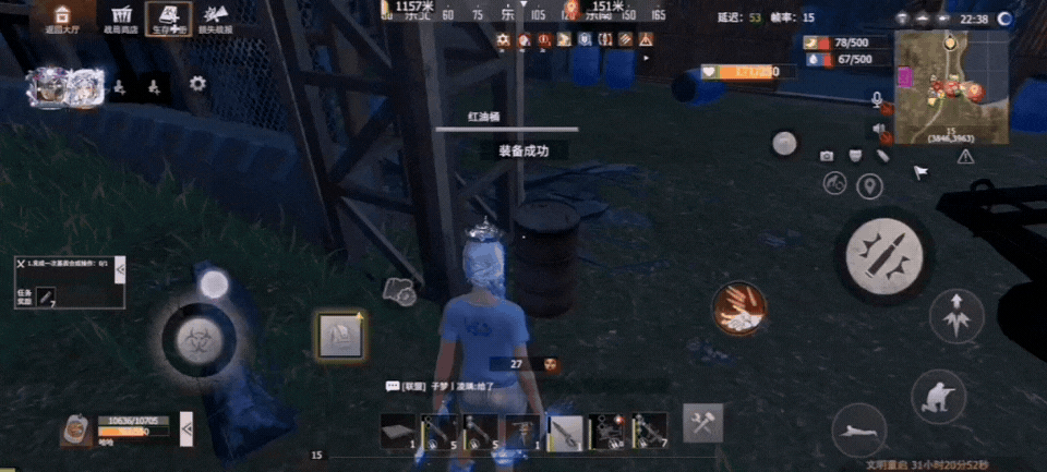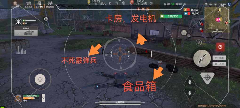 仓库:匪徒营地右下方,无辐射,可直接进,物资15分钟刷新、油桶15分钟刷新。