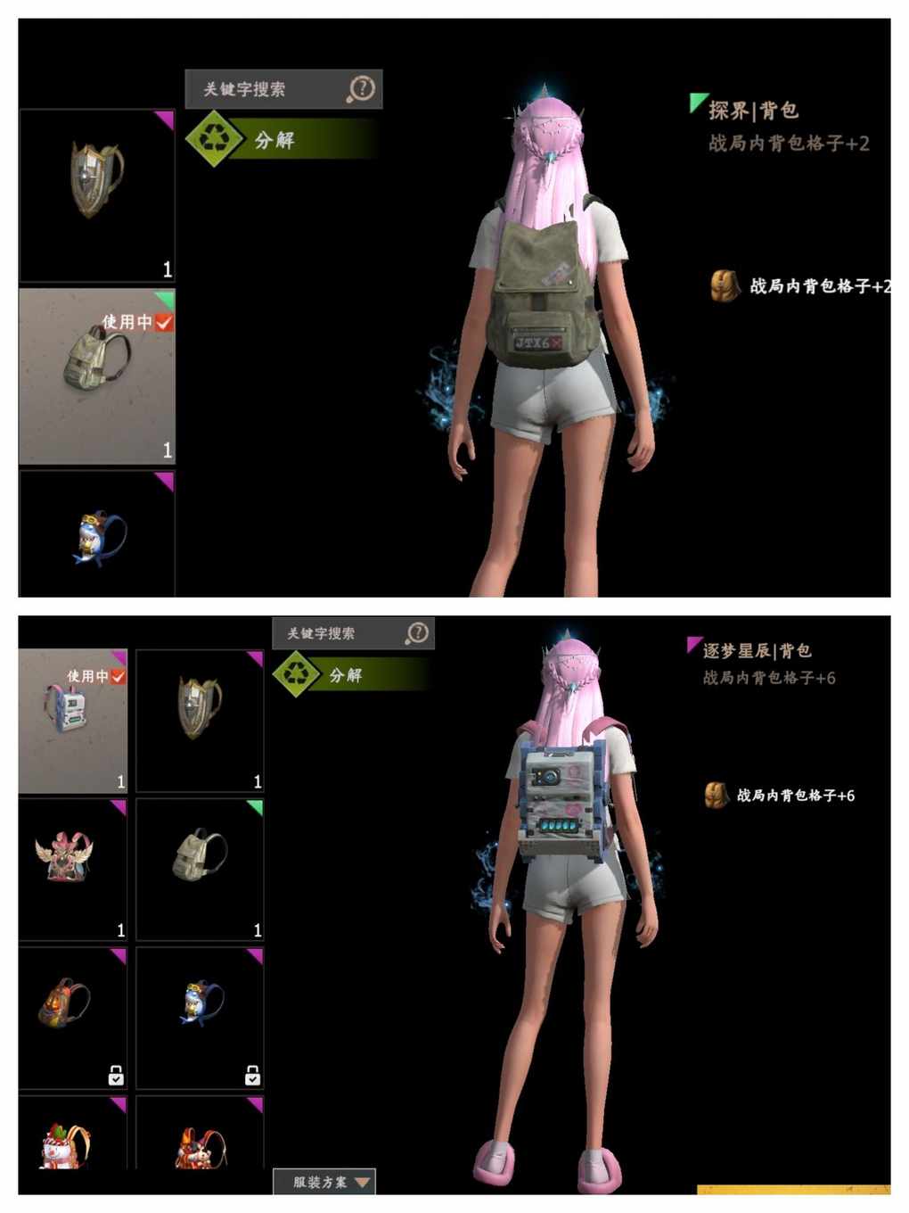 🔸装备栏可额外提供7格储物空间,属于战局内的固定空间,且只有部分物品能放在装备栏,所以不记入基础背包容量统计。