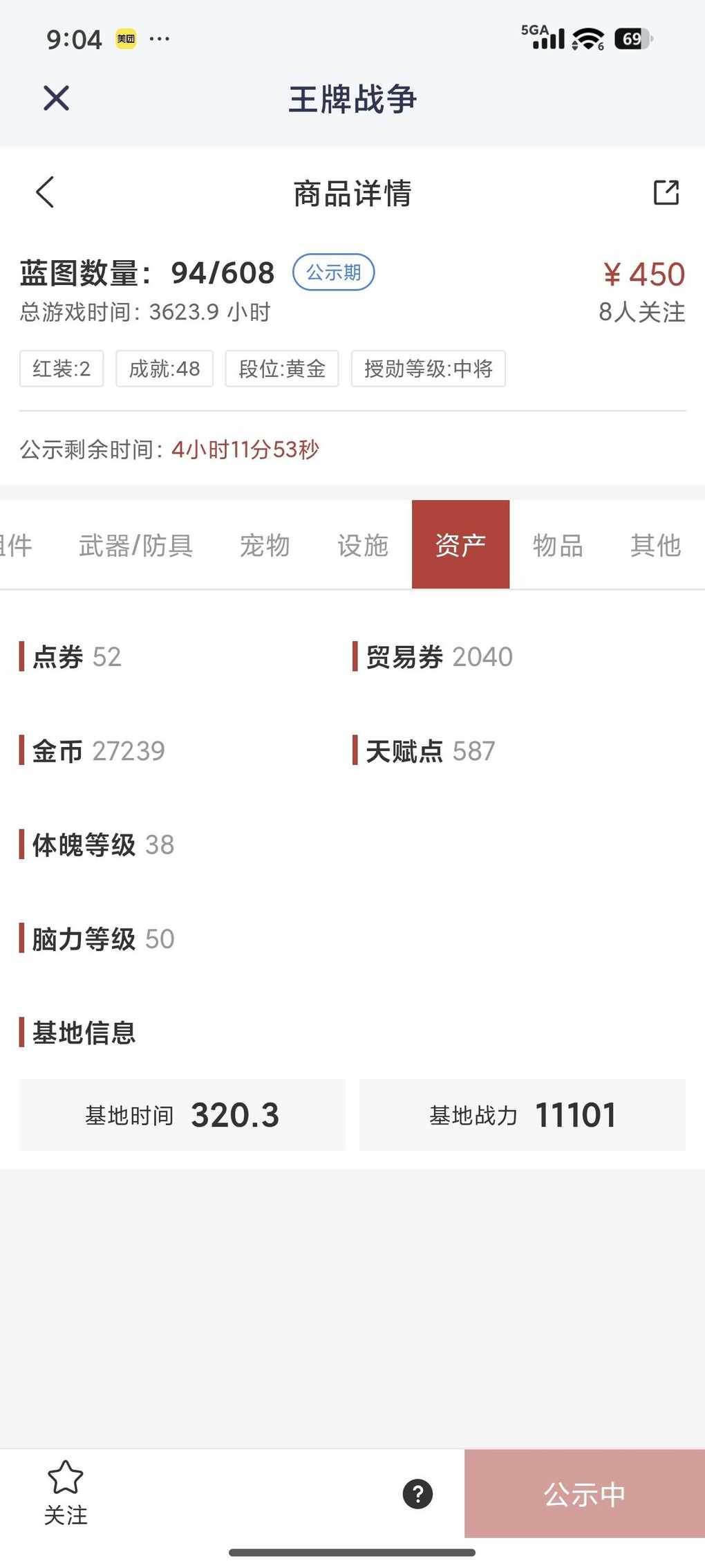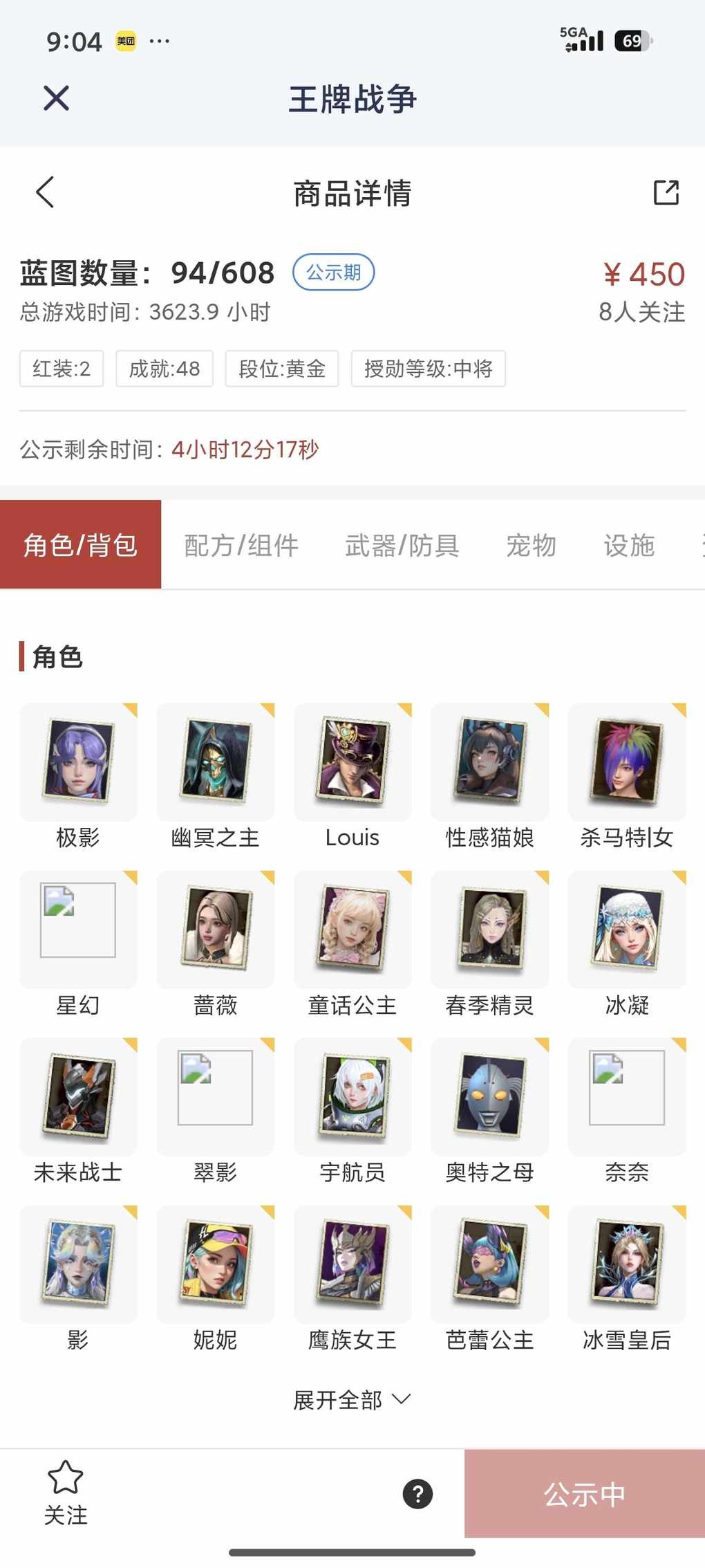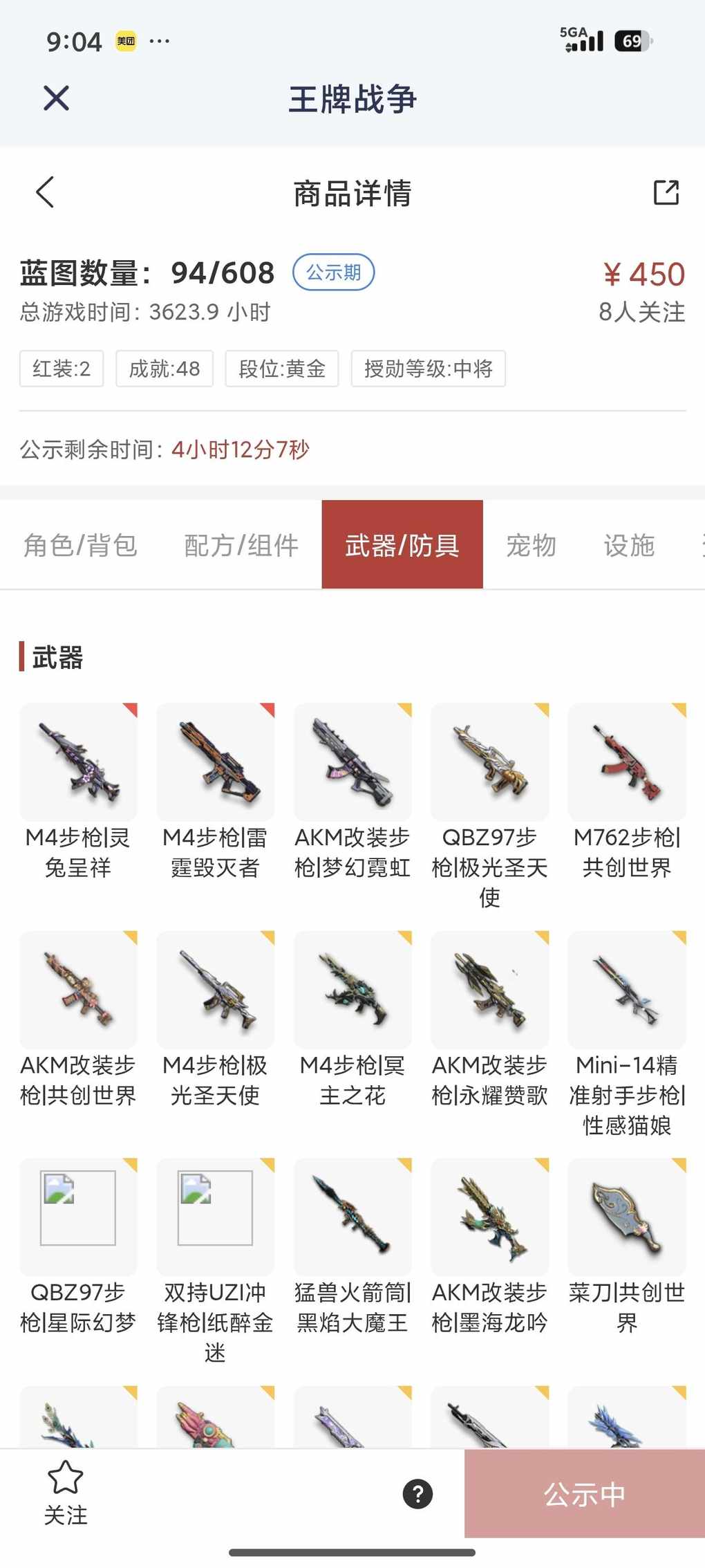 450,满天赋,有一个绝版配方,有滑翔翼 ,金甲龙,还有一套战车,2把升级枪,2040贸易卷 ,有开服用的凯翼马配置,上手既玩有一堆家具好看的皮肤,是巡查员