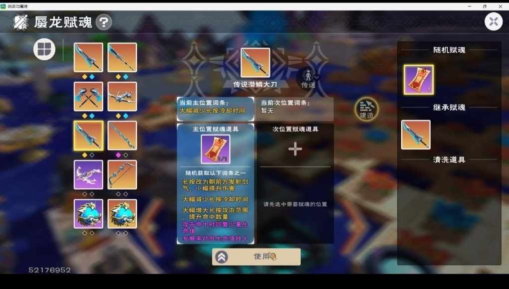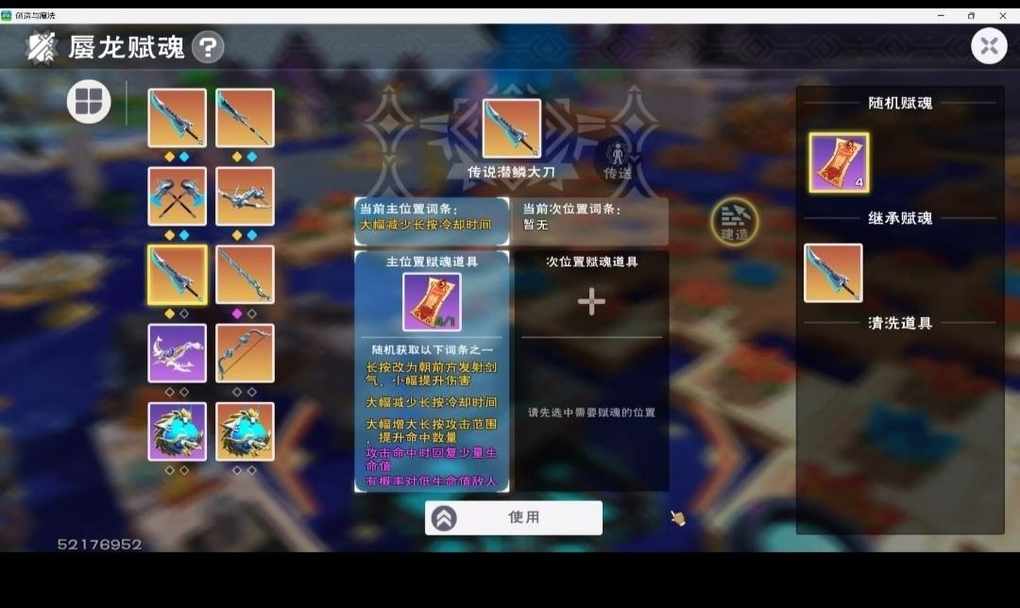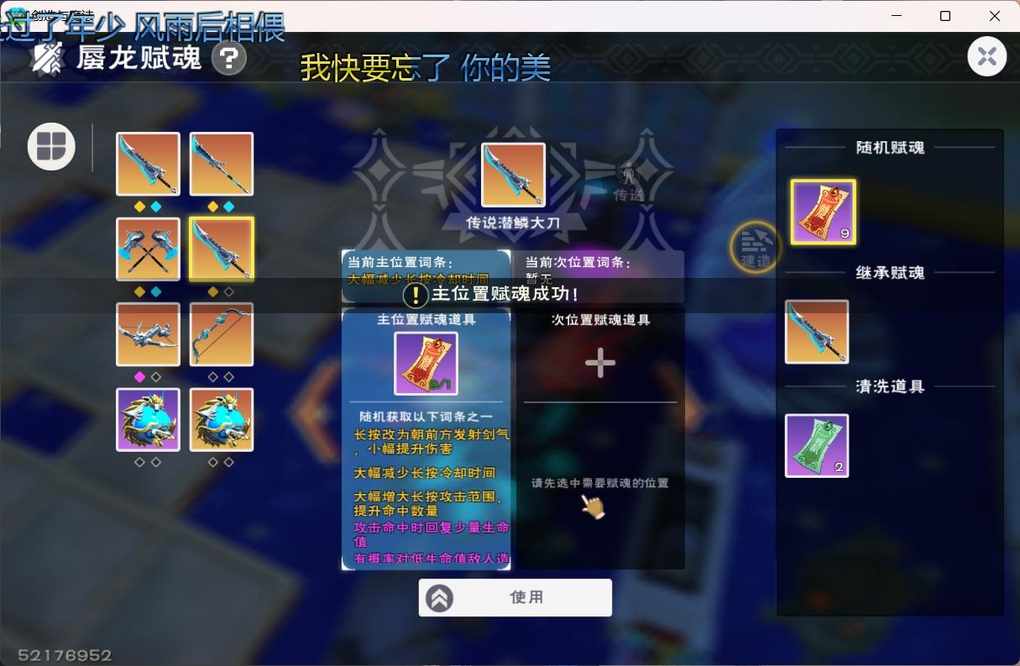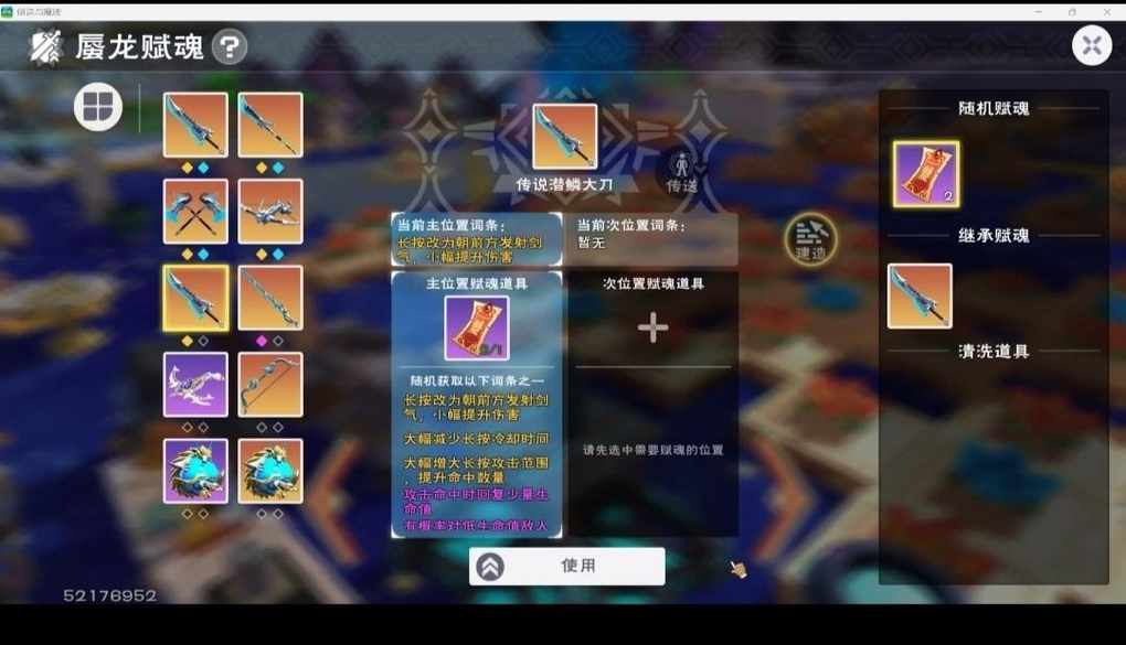 打完金珠子给了2个砂,贝壳里获得一个(匣卖了),再加上自己原本存的一个 一共做了俩赋魂符,然后第二发直接出范围所以感觉给传说赌概率不如先用史诗赋魂出金,然后继承给传说武器,亏一个史诗武器,但史诗武器容易出金 (没有传说武器,不知道史诗能不能继承给传说)