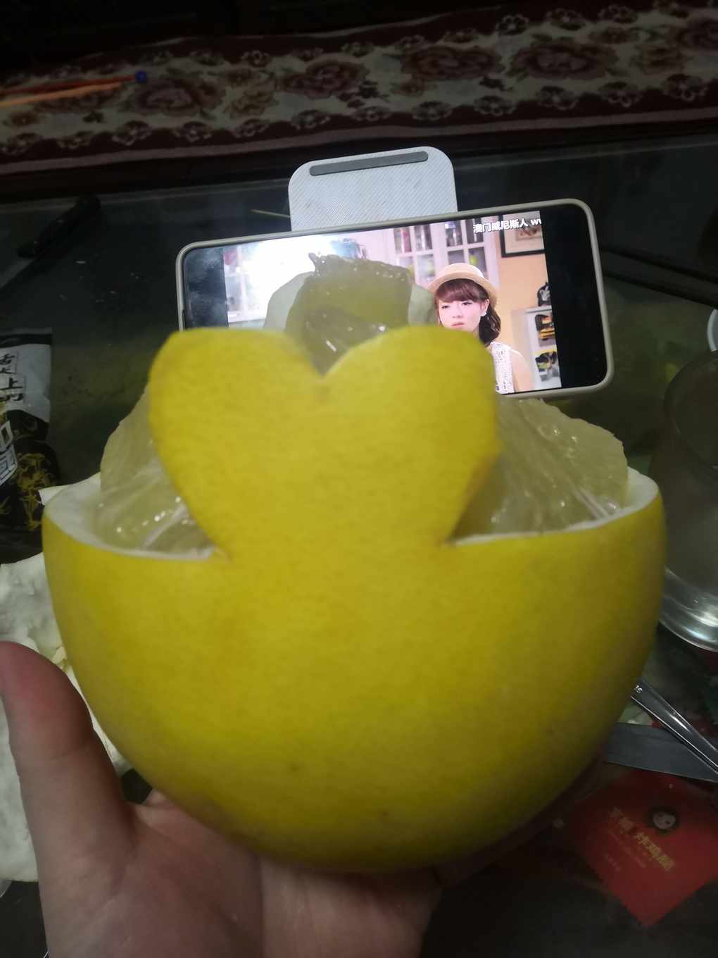 吃完饭剥个柚子 造个型再剥好肉饭就消化的差不多了正好开吃~