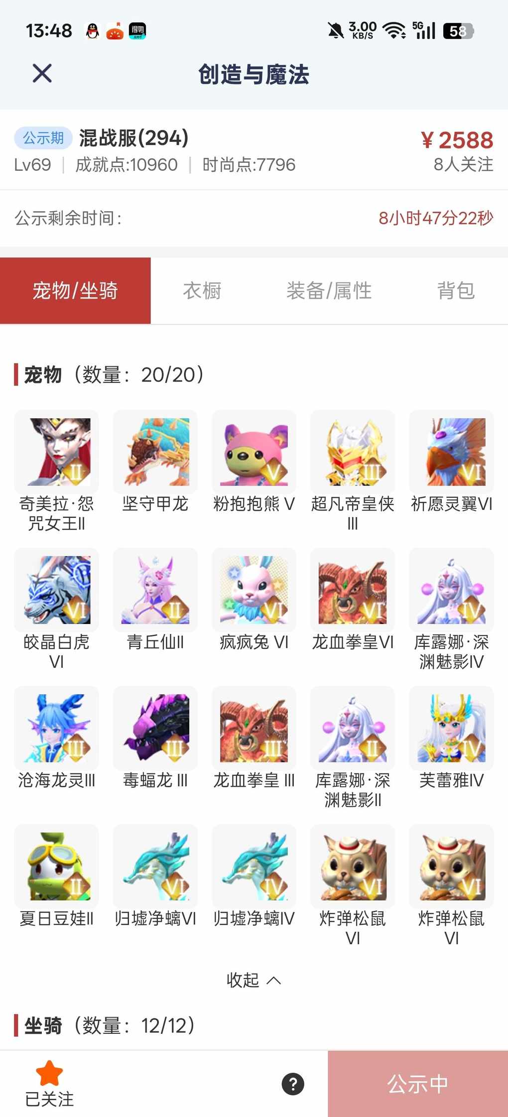 出285~375大合服号,有千仞护盾,信标凝丹都点满,大背饰恐龙全套海神等绝版服饰,寒月武器系列差个弩就整套,炼金一周左右可满,贝壳币90%左右,武器缩短时间弩,范围大剑,邮箱还有超多物资,实惠价
