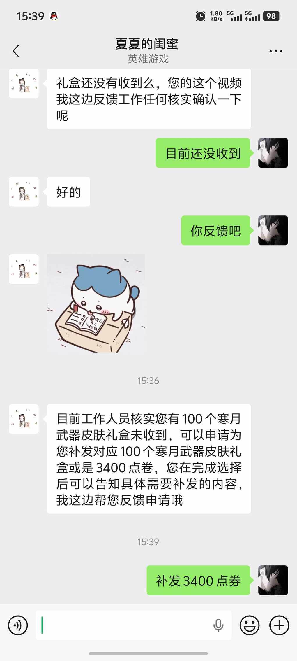 我上次买的盒子没到,然后找客服给我补了,