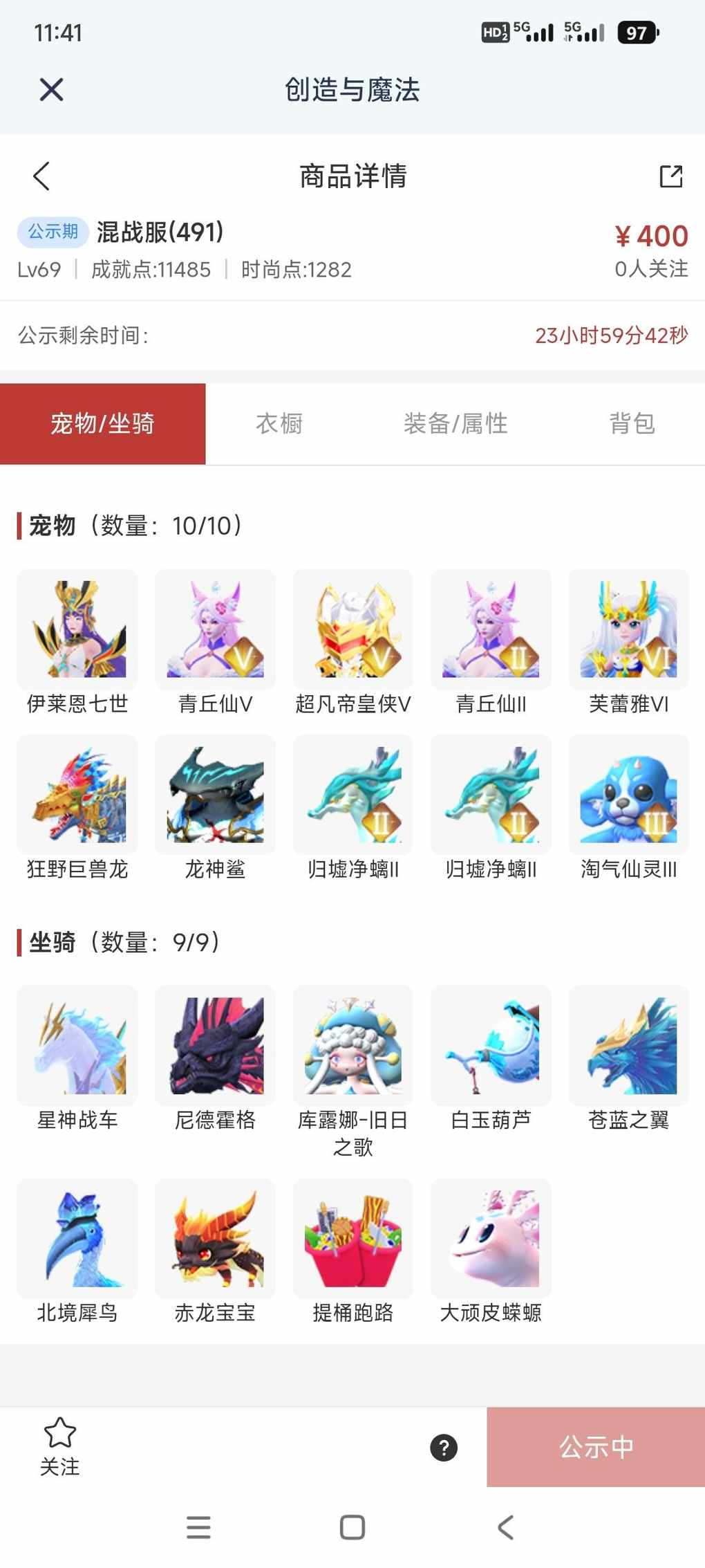 快来看看新上架的角色~区服:混战服(491)-角色等级:Lv69 https://cbe.yingxiong.com/?to=%2Fcm%2Fgoods%2F364297&gameName=cm 来自舱宝鹅(创造与魔法)
