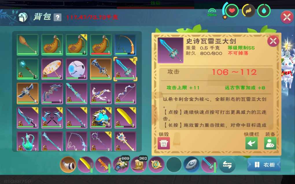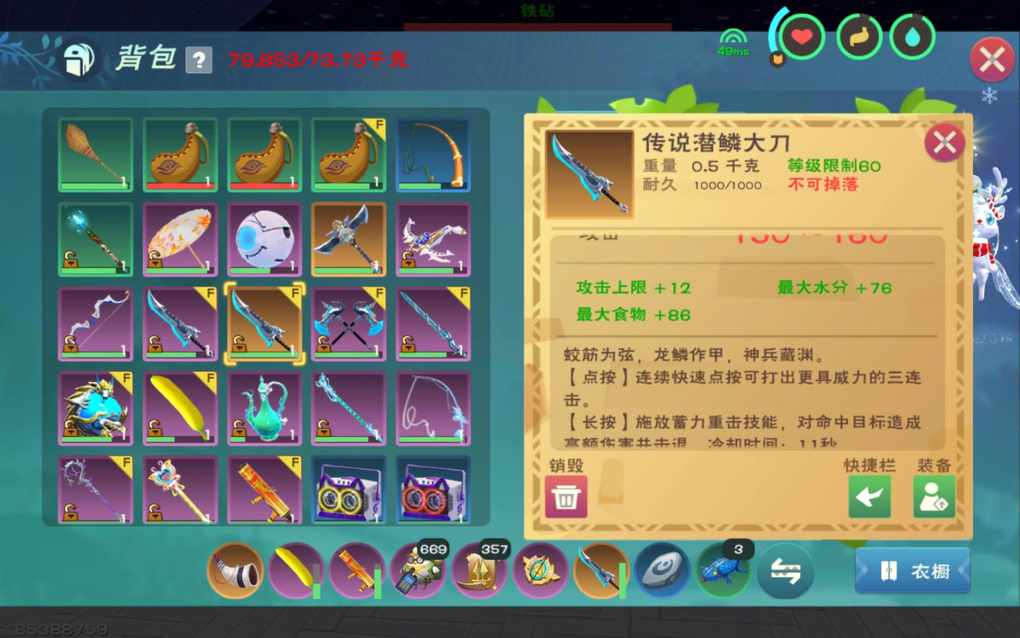 只因为了做成就从箱子中取出了一张剑图使用铁砧制作雷刀,突然!游戏音效一响…我竟然一发就制作出了传说雷刀!拿了把史诗的进阶做成就还做了把小极品瓦雷亚大剑听取瓜群大佬的建议,我把传说雷刀进阶了,经过三次进阶,最终获得了一把攻击上线+12的传说潜鳞大剑祝大家也能一发出传说!