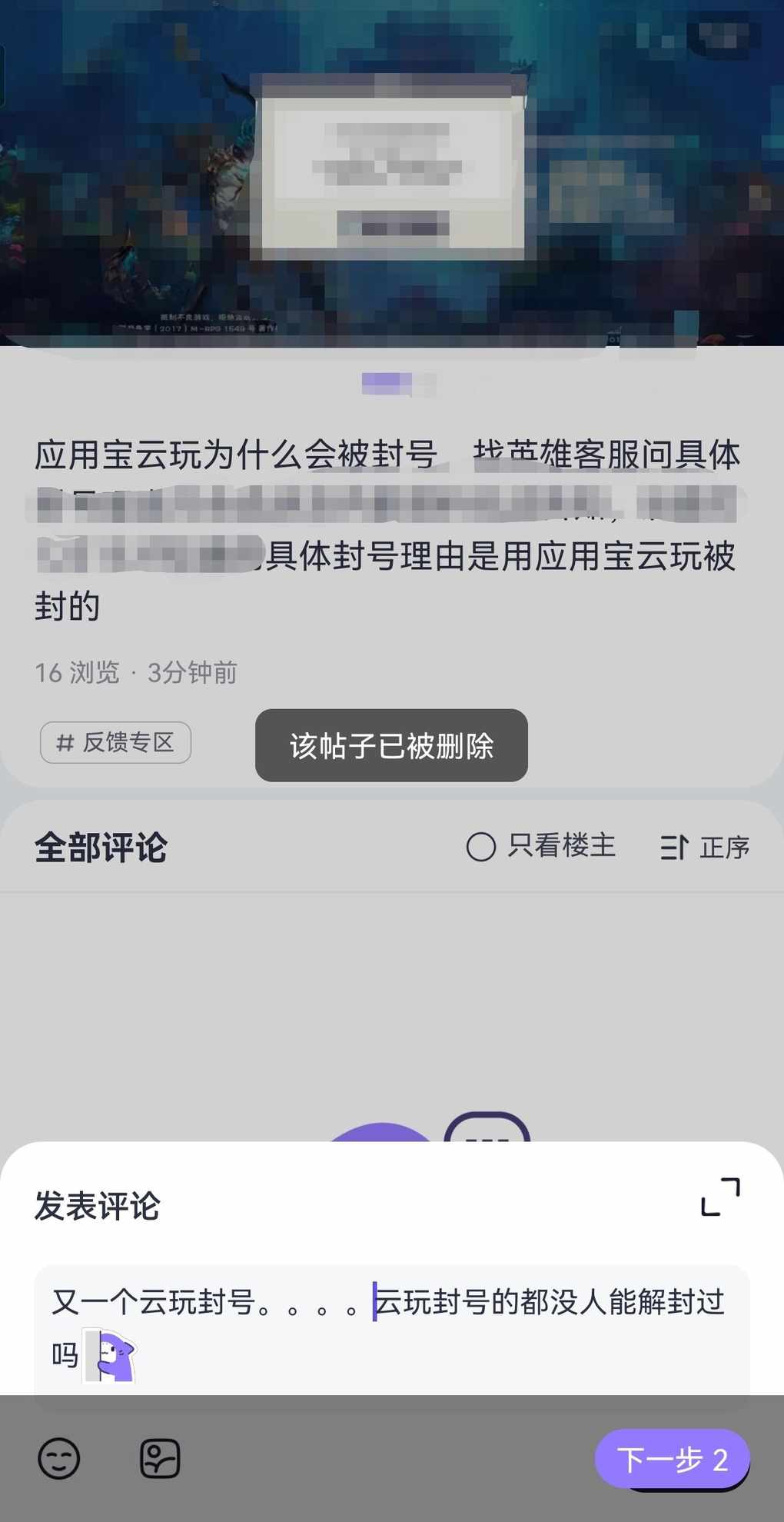 我之前云玩也被封号了,投诉才给解封