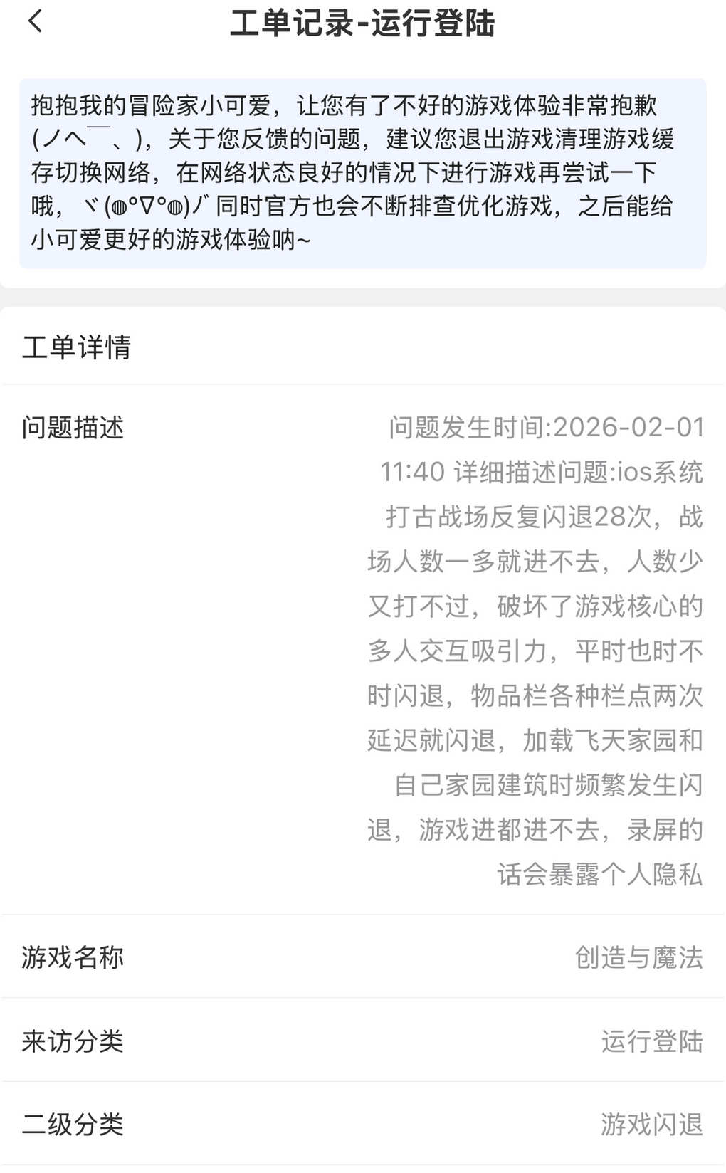 666,演都不演了,官方就这个态度,我要是没排查其他方面的问题,我会找他反映吗?就知道养几个客服,程序员跟吃干饭一样。就知道捞钱,多人时实在线这种都能出问题,这个游戏的根本就是有人陪着玩啊,现在人多就闪退。