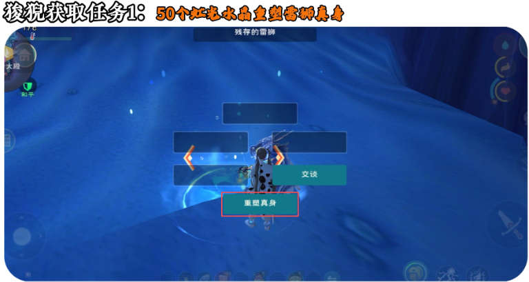 任务1:携带50个虹光水晶来到龙府大殿背后这个位置给雷狮重塑真身