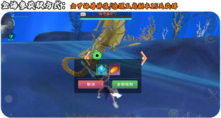 1、金海参首先可以通过金甲海马掉落获得