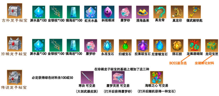 奖励一览表:传说秘宝包含珍稀秘宝所有额外多了几个奖励