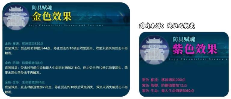 评价:头盔铠甲裤子凑齐相同词条的额外效果很有创意,效果最高提升80点防御!