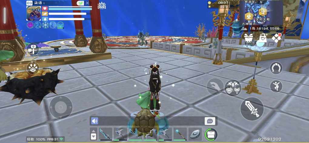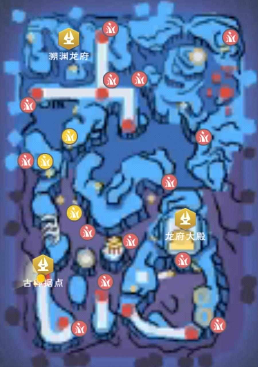 金色标识为澄海晶果(果盘),已知5个点位中三个可以标记另外两个如图所示,旧日据点库露娜周围一个在圆圈内,龙府大殿点位我见过的在这个乌龟旁(小声哔哔这个小乌龟可以每天领取饲料或做饲料的材料之一)同时此处也是龙印更新必刷点附近