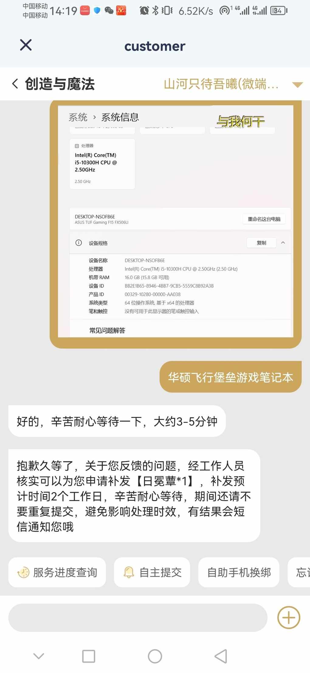 找客服申请补偿