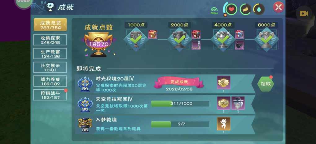 秘境1000场终于刷完了,昨天999场刚好次数用完给我急坏了,期间也是有点不愉快,刚进去就坍塌,进去后装备丢失,宠物丢失,天空变紫卡顿等游戏特色,好在是再也不用刷了,渡劫成功