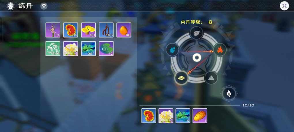 三:将收获到的物资炼丹,配方如图所示