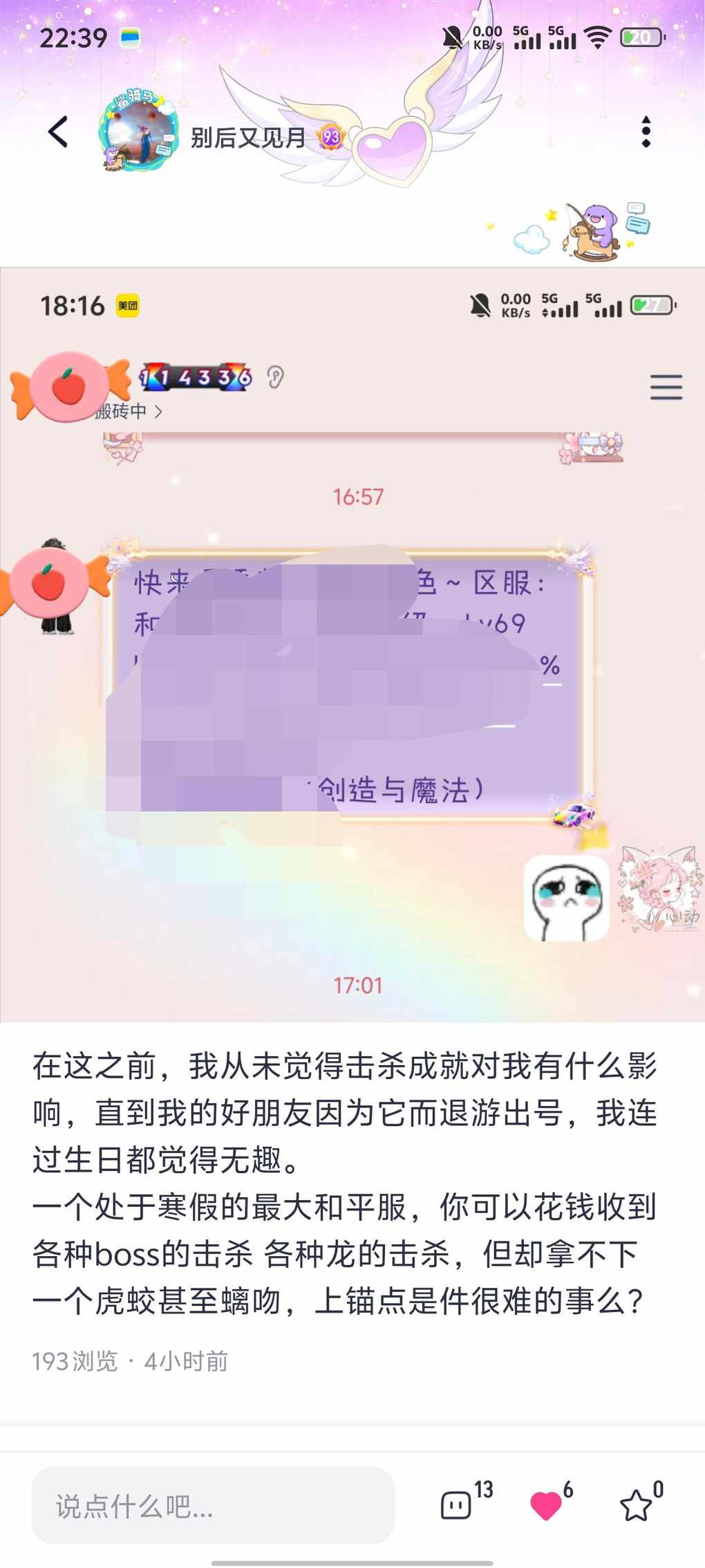 在这之前,我从未觉得击杀成就对我有什么影响,直到我的好朋友因为它而退游出号,我连过生日都觉得无趣。