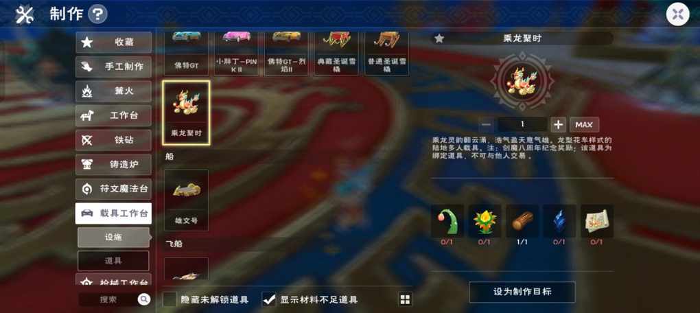 这载具的制作材料竟然要用稀有物资才能做啊