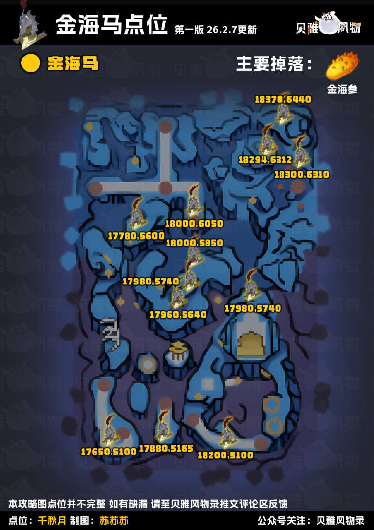 金甲海马(金海参)/海洋符文旋涡(二级星石)/澄海晶果点位
