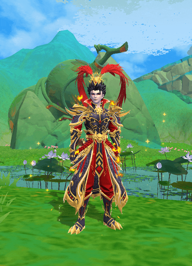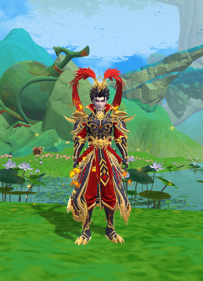 金红战甲覆体,烈焰席卷周身