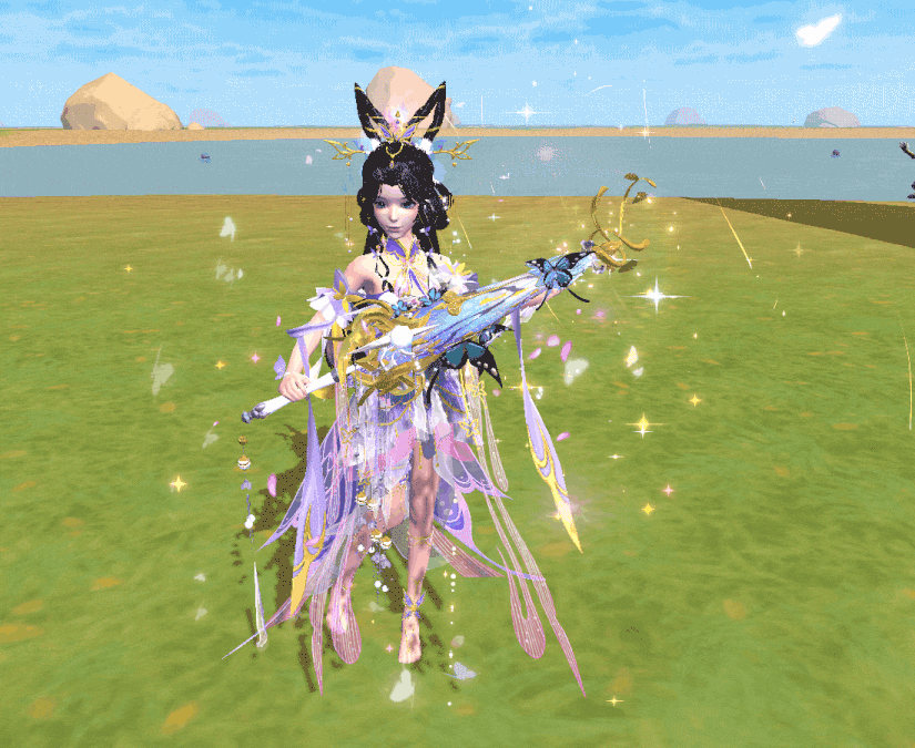 蓝紫流光的蝶翼环绕弩体