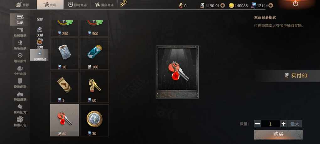 还有一件官方出售的物资,值得购买那就是幸运贸易钥匙,可以从幸运夺宝中抽取大量物资。