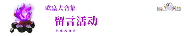 本期留言活动,我们将抽取两位符合留言条件的冒险家赠送【圣焰篝火·紫蒲】,抽取三位符合留言条件的冒险家赠送【贝雅风物录建筑图纸自选】。