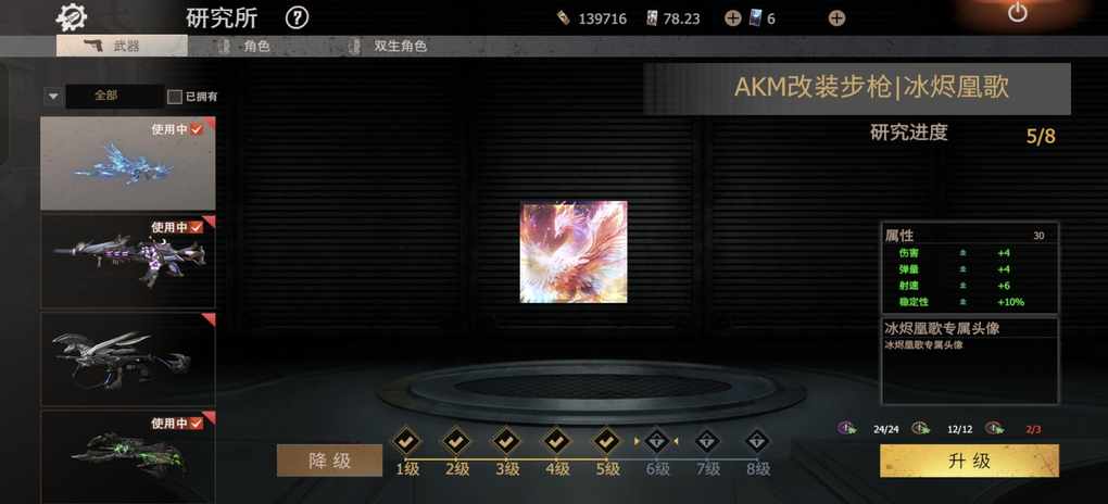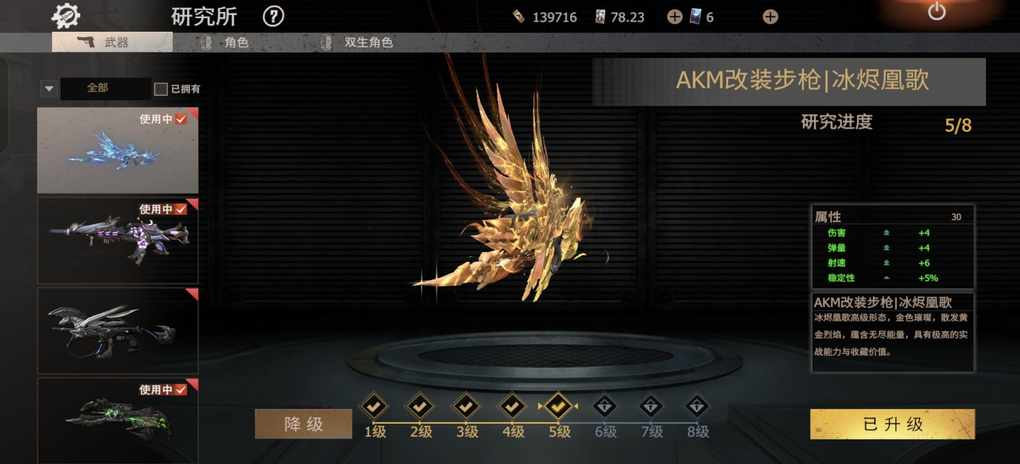 我抽这彩皮冲了1千6,抽到了,还剩4千点卷 买了一点碎片,升了1级枪。最后一个碎片,有点小贵小贵的,没有买